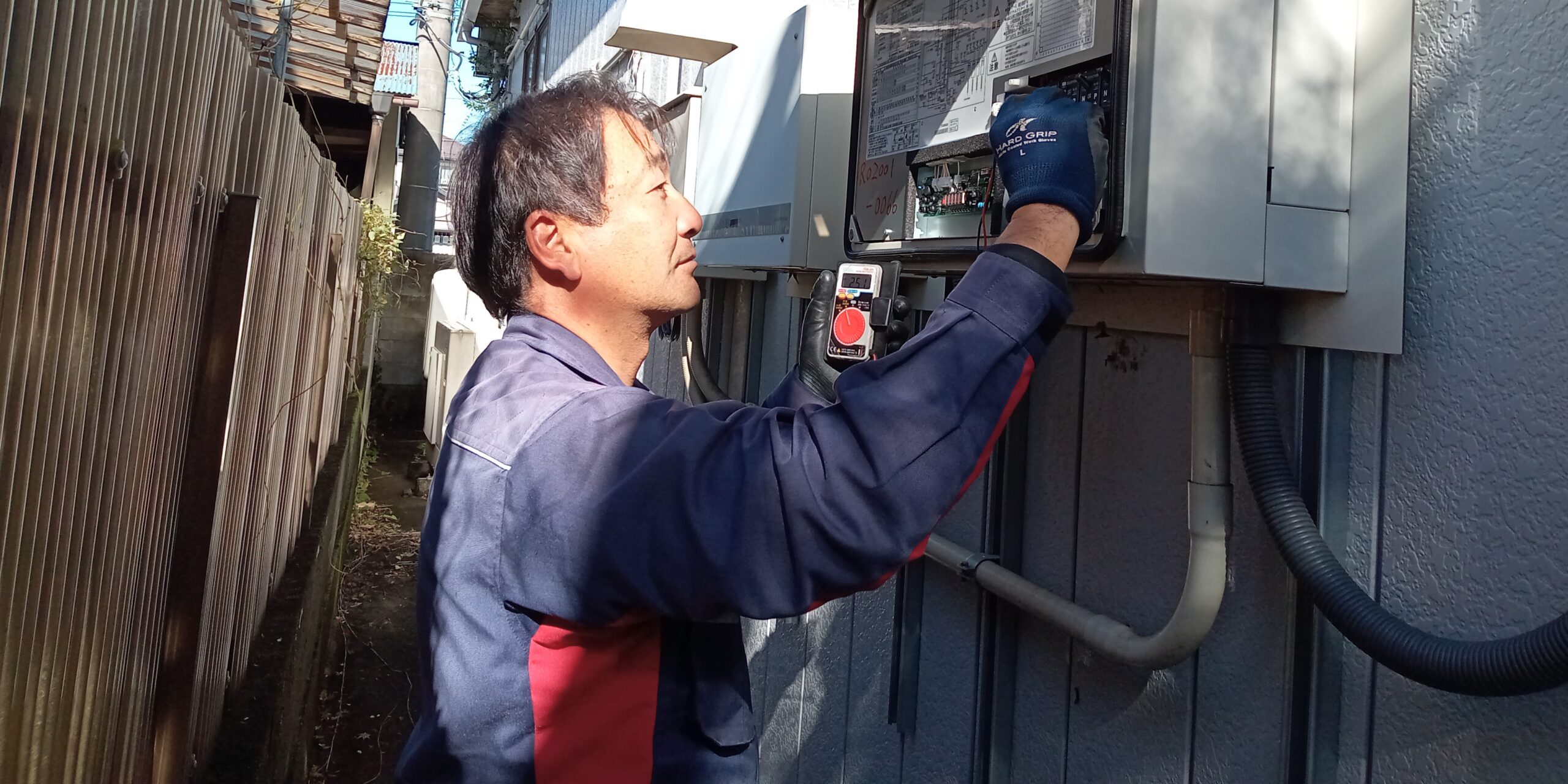 入社してから太陽光発電システムや蓄電池、ソーラーシステム等の営業・販売と、その後の点検作業や簡単な修理などの仕事を行っています。